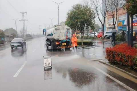 枝江城管“借雨洗城”守护城市洁净底色