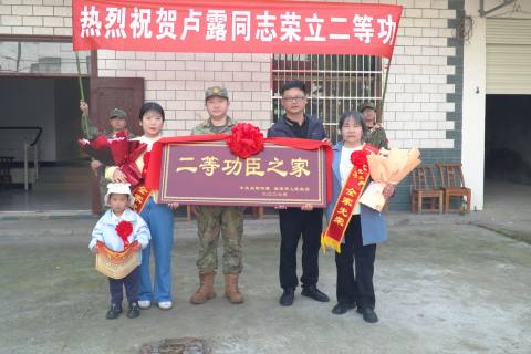 4月17日,市人民武装部、市退役军人事务局、淯溪镇人民政府相关负责人前往淯溪镇胜利村,为荣立二等功的当阳籍现役军人卢露家庭送上立功喜报和“二等功臣之家”牌匾,让军属和家乡人民一起分享这份喜悦与荣光。